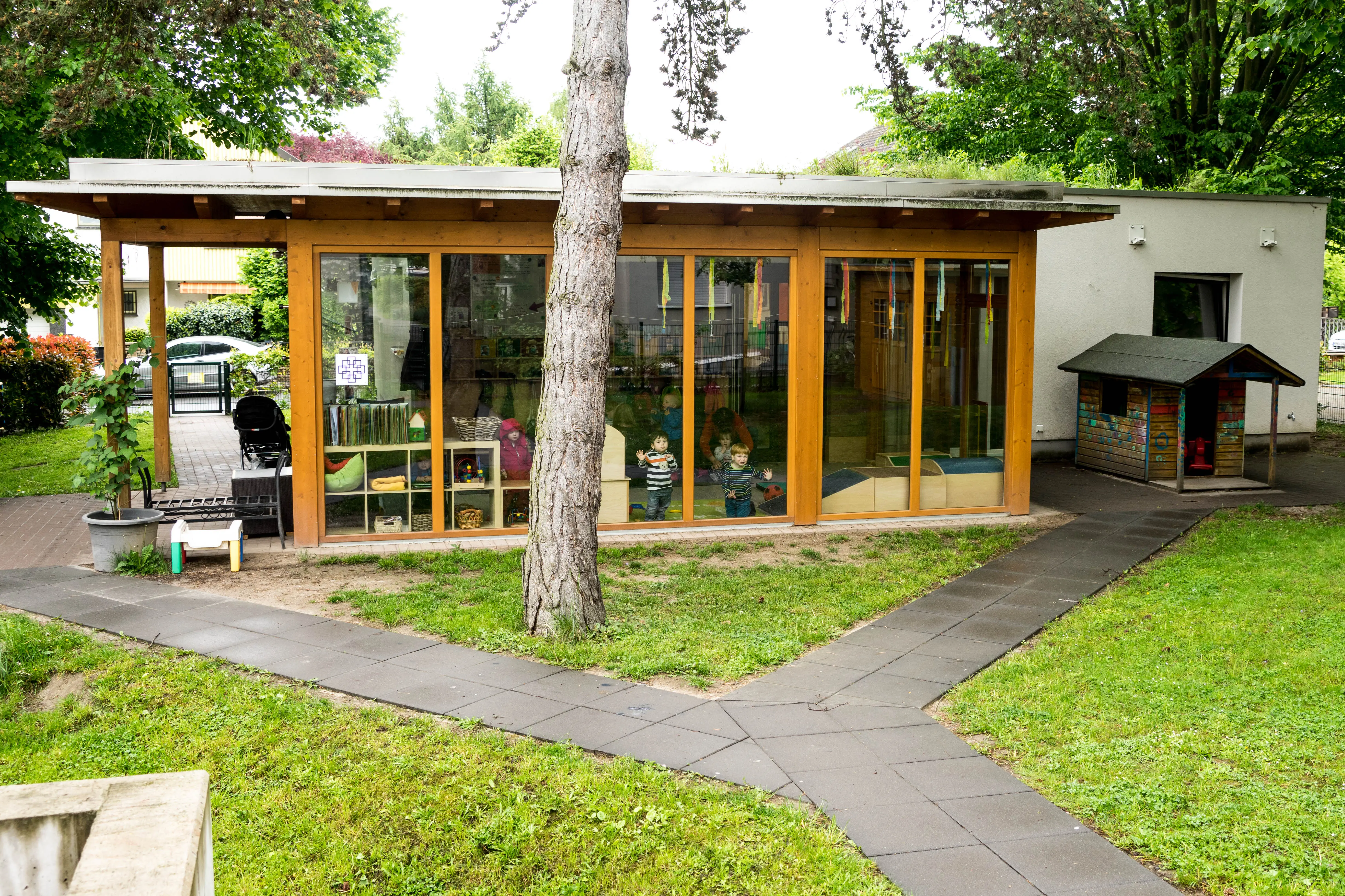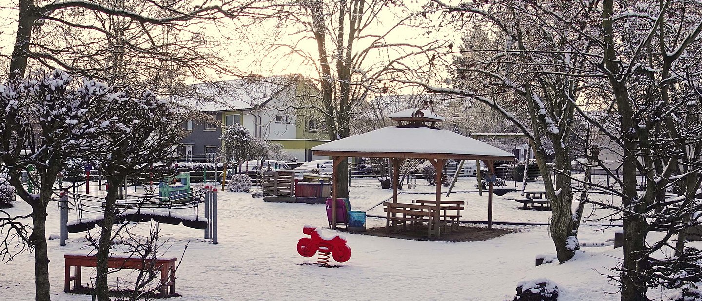 Unsere Kita in der Mainzer Oberstadt steht auf einem ca. 2500 qm großem Gelände. Das Außengelände mit altem Baumbestand lädt die Kinder zum Spiel in der Natur ein. Der Wechsel der Jahreszeiten wird mit allen Sinnen erfasst und der Bewegungsfreude der Kinder wird entsprochen. Aktuell wird das Außengelände weiter ausgestaltet und neue Büsche und Bäume gepflanzt mit dem Ziel, nicht nur die verschiedenen motorischen Bereiche der Kinder anzusprechen, sondern auch um Rückzugs- und naturnahe Spielmöglichkeiten zu bieten.